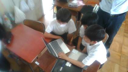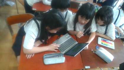 5年生は、一人一台学習者用端末を使い、「桃太郎電鉄〜教育版〜」で遊んでいました。3〜4人で1つの端末を使い、いろんな駅の名前、地域の名前を口にしながら遊んでいました。エデュテインメント(エデュケーション&エンターテインメント)ですね。