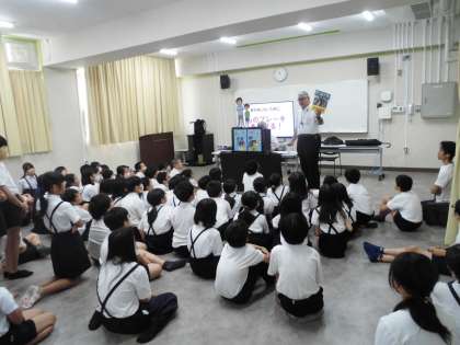 本日、5年生が中央少年サポートセンターのスタッフに来ていただき、非行防止教室を実施しました。ペープサートを使ってストーリーを進め、クイズに答えたりしながら、みんなで犯罪に近づかない正しい行動について考えることができました。