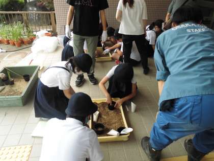 本日は、旭区役所の方々のサポートを受けて、環境委員会が花しょうぶの株分けに取り組みました。スタッフの方から丁寧な説明を聞いた後、環境委員会の児童は慎重に作業していました。実際に植物に触れ、その成長に関わることは、児童にとって本当に貴重な機会となっています。
