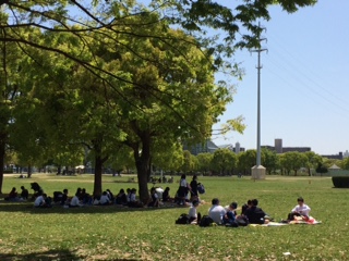 見学の後は鶴見緑地公園まで歩いていき、春の自然にふれ、