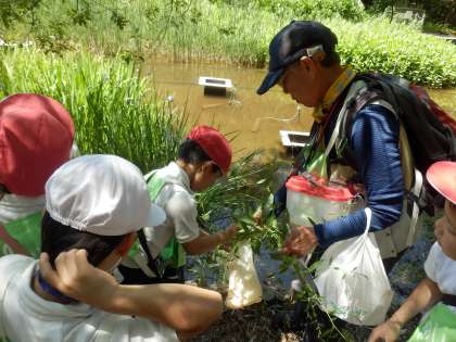 公園に着くと、3年生は自然観察学習館で