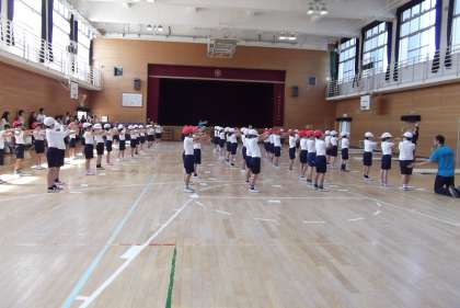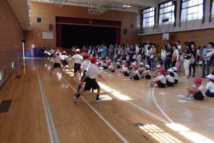 2時間目は講堂で、反復横跳びと立ち幅跳び、