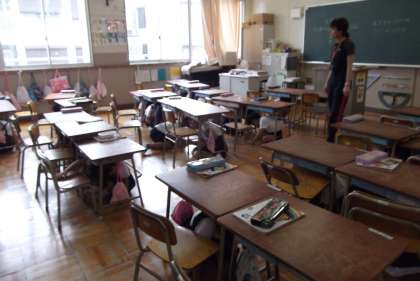 学校では、
