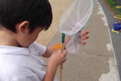 「ツマグロヒョウモン」という蝶を観察している子どもが