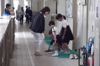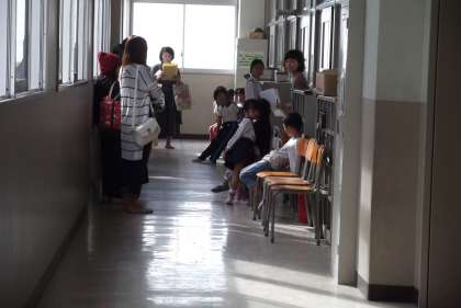 子ども達は、保護者に連れられて、