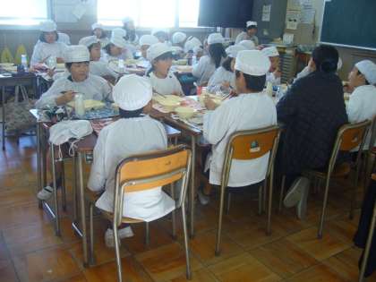 たてわり班でなかよく給食を食べることにより、