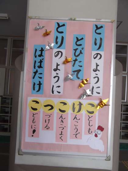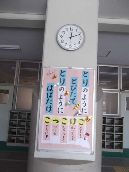 ひとつめの掲示は、にわとりの鳴き声から作成しました。