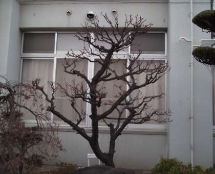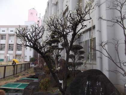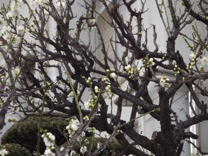 白と赤の梅のつぼみが、少しずつふくらんできています。