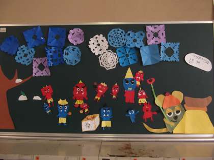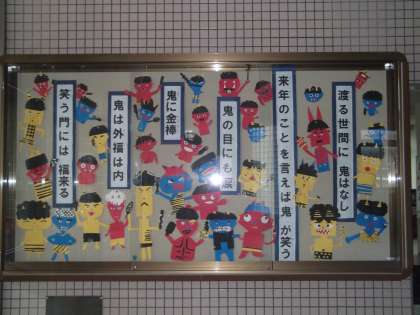 玄関学級の掲示にも、鬼」が登場しました。