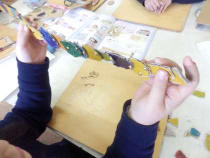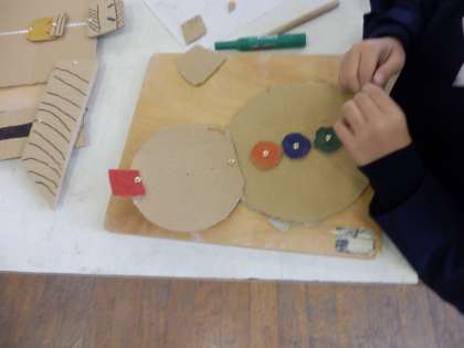 図画工作では、ダンボールを