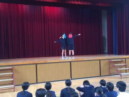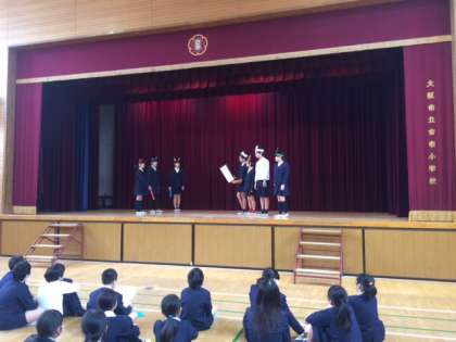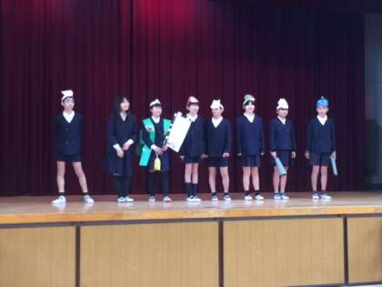 小道具を作り、役割分担を決めて発表しました。