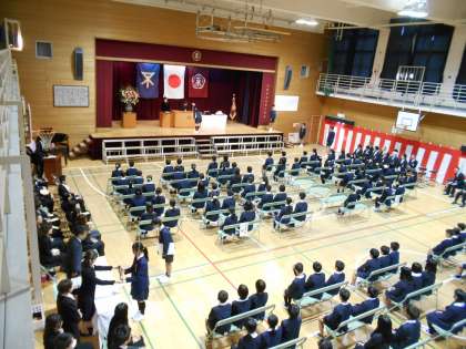 来賓の皆様や保護者、PTA役員・実行委員の皆様、在校生、教職員と