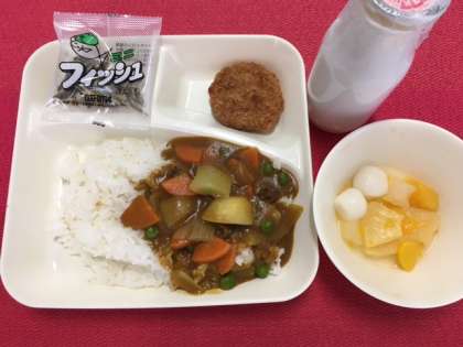 牛乳・カツカレーライス・フルーツ白玉・ミニフィッシュでした。