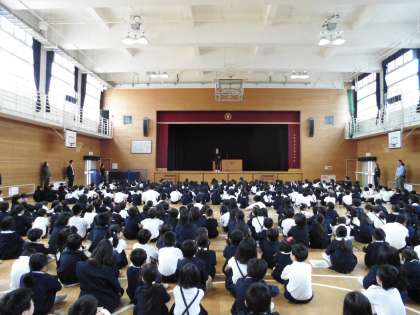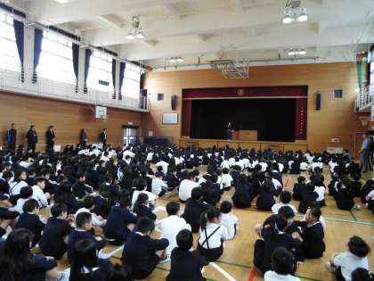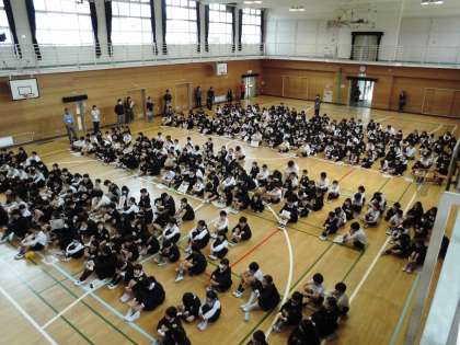 その後に、講堂へ集まり全体での並び方も練習しました。