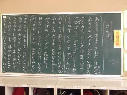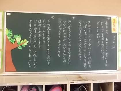 後ろの黒板には、「さんぽ」の詩が書かれています。