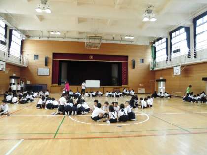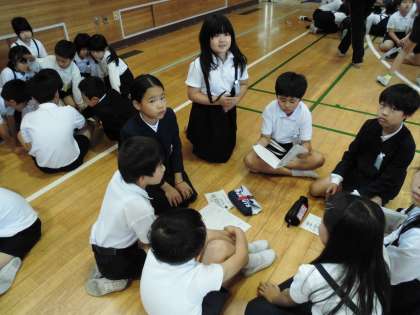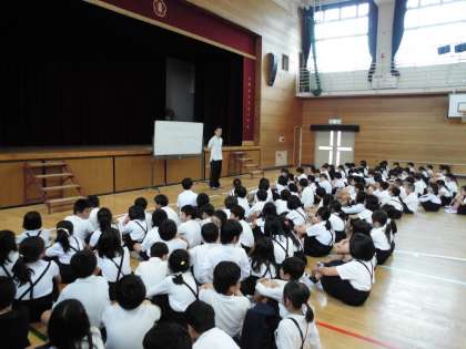4時間目に3・4年生が講堂に集合し、