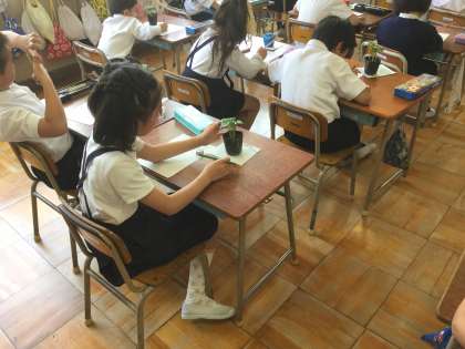 植える前に、野菜の苗をよく観察、スケッチしました。