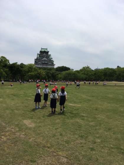 今日は大阪城公園の西の丸庭園に1・2年生で遠足に行きました。