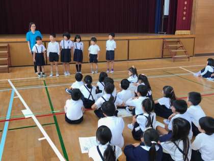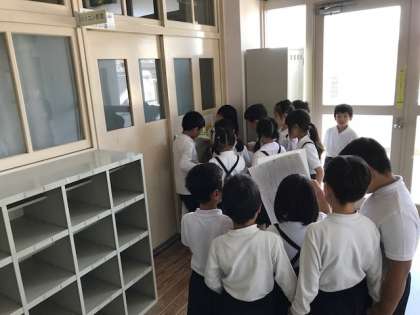 2年生のお兄さん、お姉さんと一緒に学校たんけんをしました。
