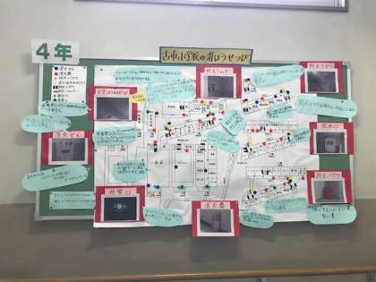 古市小学校の消防設備についてまとめたものを 掲示板に掲示しました。