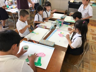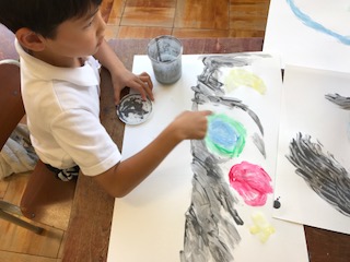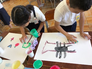 とろとろ絵の具を使って 指で 好きな物をかきました。