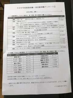 2学期に 今市中学校で 中学校の授業体験 部活動体験を計画しています。その前に 子ども達に体験したい希望の授業や部活動のアンケートをとりました。どの授業を受けようかな どのクラブにしようと 子ども達はわくわくしながら選んでいました。