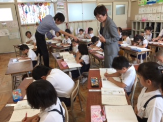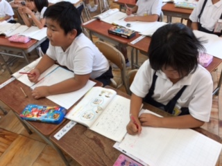 知らせたいことを 家の人に知らせようという学習です。どんな人に知らせることができるかなと意見を出し合いました。自分の知らせたい人を 1人選んで書きます。どんな文が書けるでしょうか。