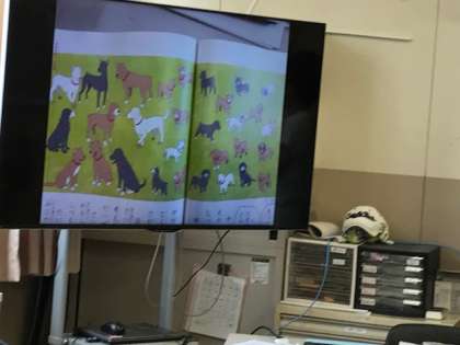 先生の話をメモにとり 本の中のたくさんの犬の中から 見つけました。