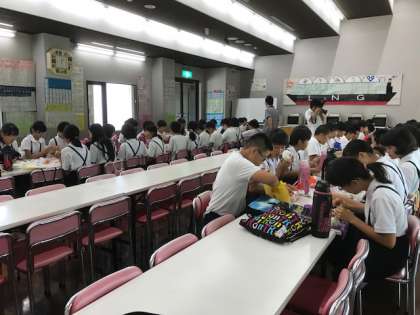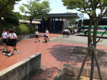 工場の敷地内をバスに乗って見学した後 お昼ご飯を食べました。
