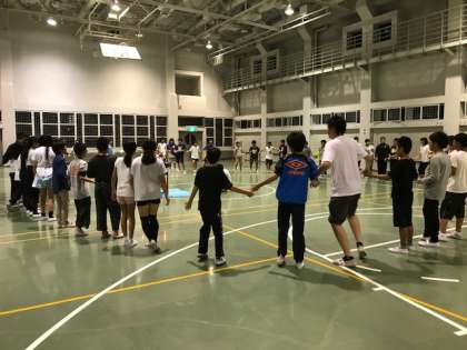 伝言ゲーム 森のクマさんの歌 シルエットクイズ 漫才 イントロクイズ 栄光の架け橋の歌 フォークダンス(マイムマイム) じゃんけん列車でした。