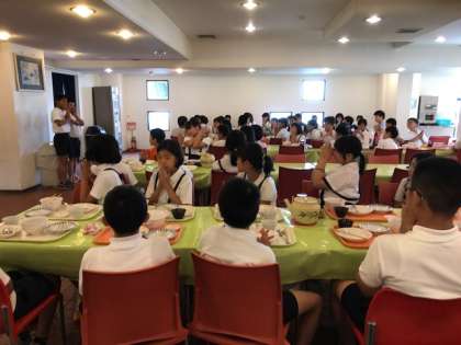 カッター訓練で体力をしっかりと使ったので おなかも空いたのでしょう。完食の子どもも多くいました。楽しい食事タイムとなりました。