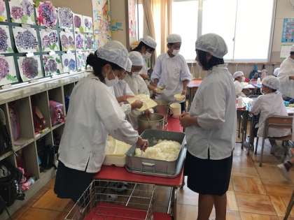 子ども達は、楽しく話しながら給食をいただいています。