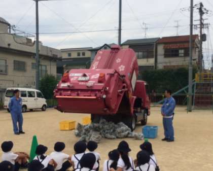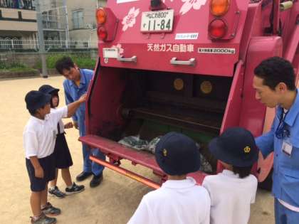 今月4日(火)に古市小学校にパッカー車が来ました!