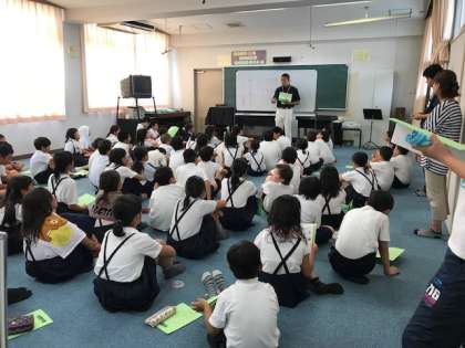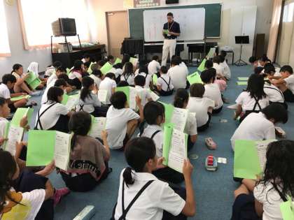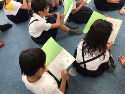 子ども達は 完成したしおりをもち わくわくしながら 聞いていました。