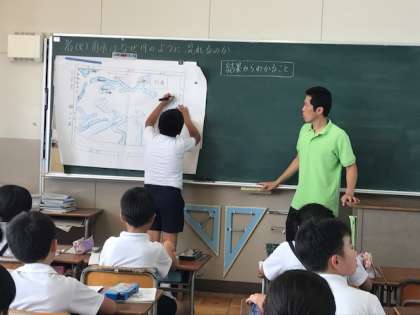 運動場で 雨が降った時に調べたことをもとにして 考えました。