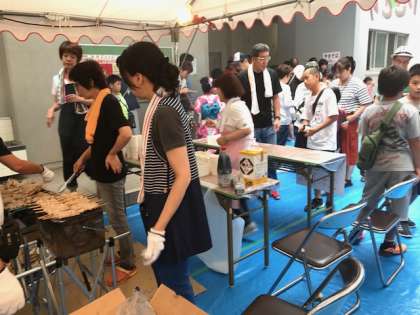 古市会の皆様によるかき氷 やきとりです。