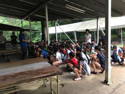 林間学習 魚つかみ