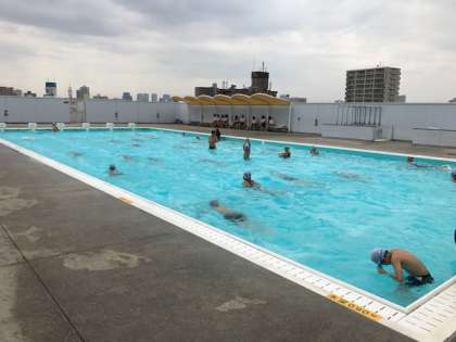 クロール 平泳ぎの練習をしました。練習の成果で どれだけ距離を伸ばせたか 泳ぎました。