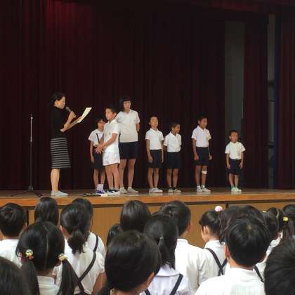 児童朝会で、