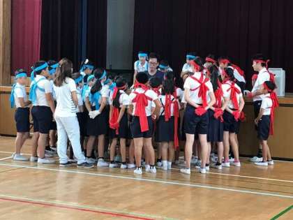 全校練習を終えた後に集まって 今日の練習を振り返りました。
