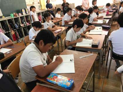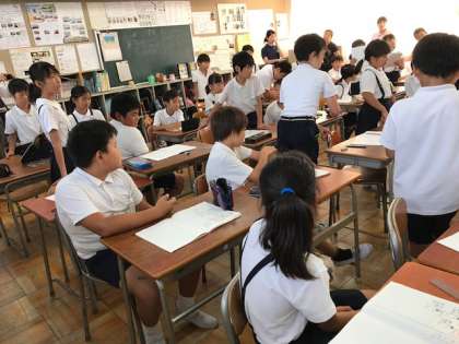 友だちの意見を聞いて つぶやきをノートに書く子どもたち