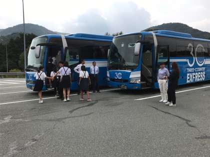 バスを降りました。先ほどと違って 今度は少し暖かさが感じられます。空も少し晴れています。