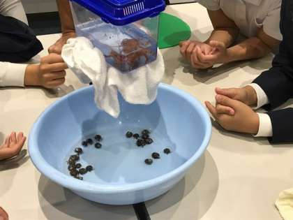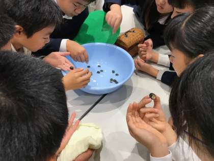 まず 蓋をして 音を聞き それがどんな生き物が動いているのかを考えました。