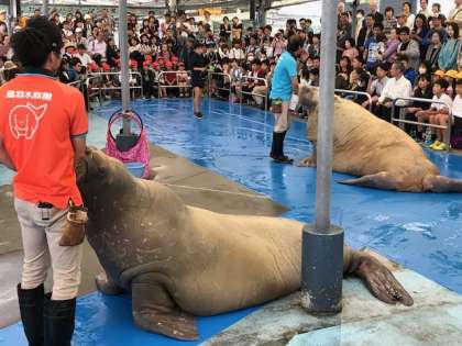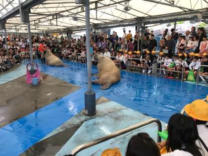 セイウチのポーちゃんとクーちゃんが登場して 楽しい特技を見せてくれました。