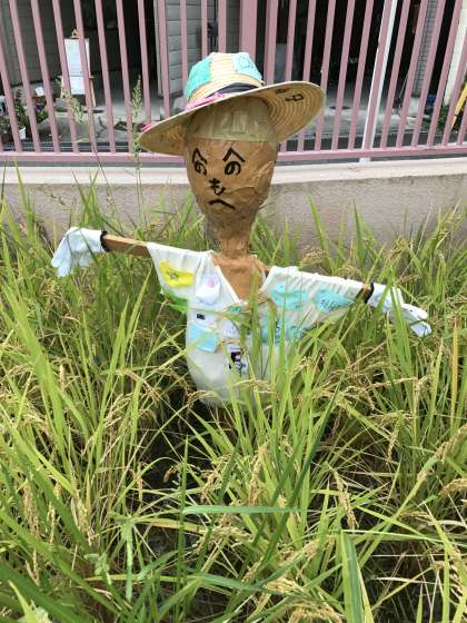 子どもたちが作ったかかしも喜んでいます。