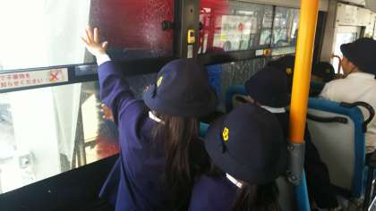 洗車の機械が動き出すと、子どもたちから歓声があがりました。
