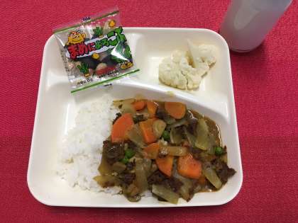 牛乳・ビーフカレーライス・カリフラワーのサラダ・豆こんぶ