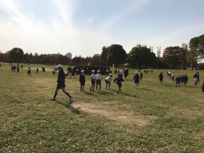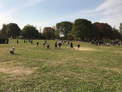おべんとうの後は グループで仲良く遊びました。広い大芝生で 思い切りおにごっこをしていました。