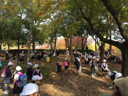 かさのついたどんぐりや丸いどんぐり、ほかにもたくさんのどんぐりを見つけていて、