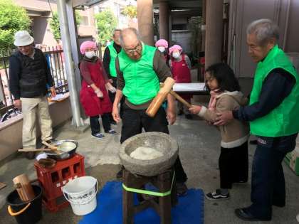 地域活動協議会主催のもちつき大会が 10時から 森小路南公園で行われました。
